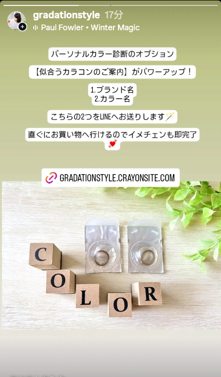 当サロンからヘアカラー色やカラコンについてリアルなアイテムを用いて説明をいたしますが、特にカラコンはブランド名やカラー名をお知りになった方が直ぐのお買い物に役立つとの考えから、本日から新たに【診断結果カラコンの数ブランド名&数十種類カラー名】をLINEにお送りすることと致しました👏