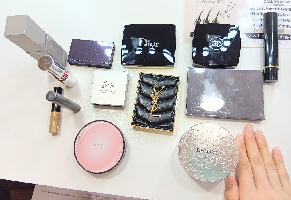 T様の盛り耐性メイクレッスンを少しだけ紐解きますと、今回T様がお持ちになったメイクアイテムの中で気になったのは"ベースメイクアイテム"